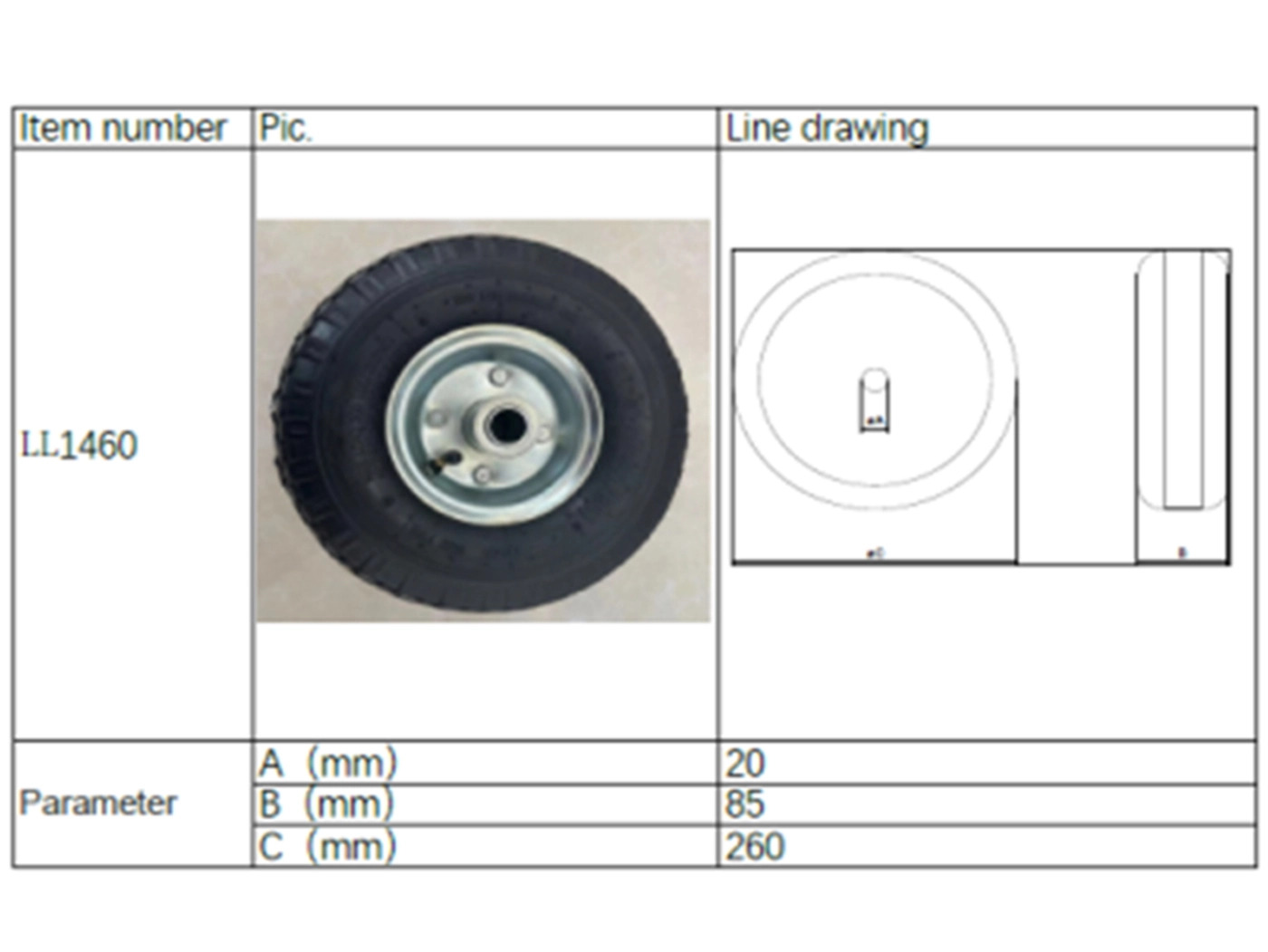 This Liberty Pneumatic spare wheel with inner tent is a suitable replacement for most pneumatic jockey wheel assemblies. It will also fit the Liberty Jockey Wheel assembly (LL1455)