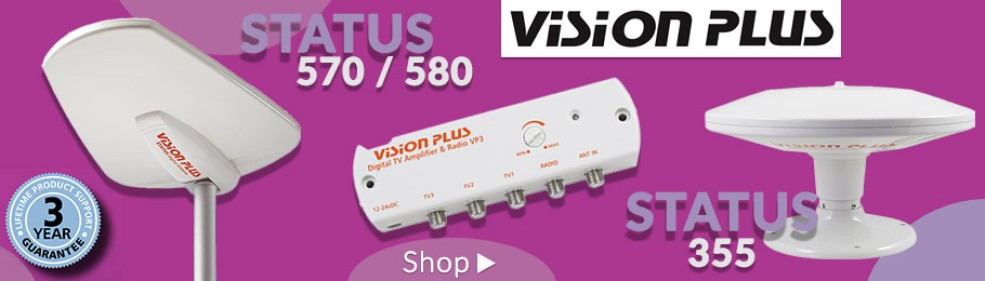 Vision Plus STATUS 570 and 580Unlike omni-directional Antenna, directional Antennas do require manual adjustment in order to receive the best viewing picture possible. In the old days it was a bit of a bind but since the introduction and integration TV Signal Finder technology, any frustration has evaporated leaving you free to relax and enjoy your holiday. At the heart of this new Antenna and offering the the latest in TV/Radio reception technology, is the Vision Plus VP5 Digital TV Amplifier. VP5 features: Digital TV, DAB & FM radio reception, dedicated TV Transmitter Locator and Variable Gain Control, for strong and weak signal areas.