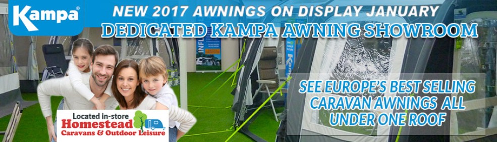 DON'T FORGET! Homestead Caravans is quite possibly the only Caravan Accessory Shop in the country with a Dedicated Kampa Awning Showroom. Visit our showroom for a rare opportunity to see Europe's 'BEST-SELLING' collection of Lightweight Awnings and Caravan AIR Awnings UNDER ONE ROOF!