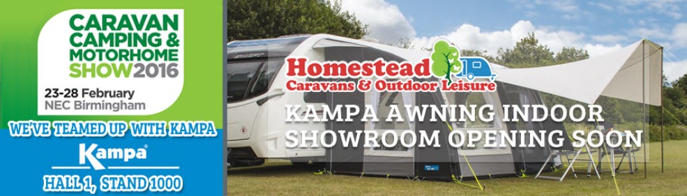 Visit Homestead Caravans on the Kampa Stand at NEC Caravan Show Feb 2016
