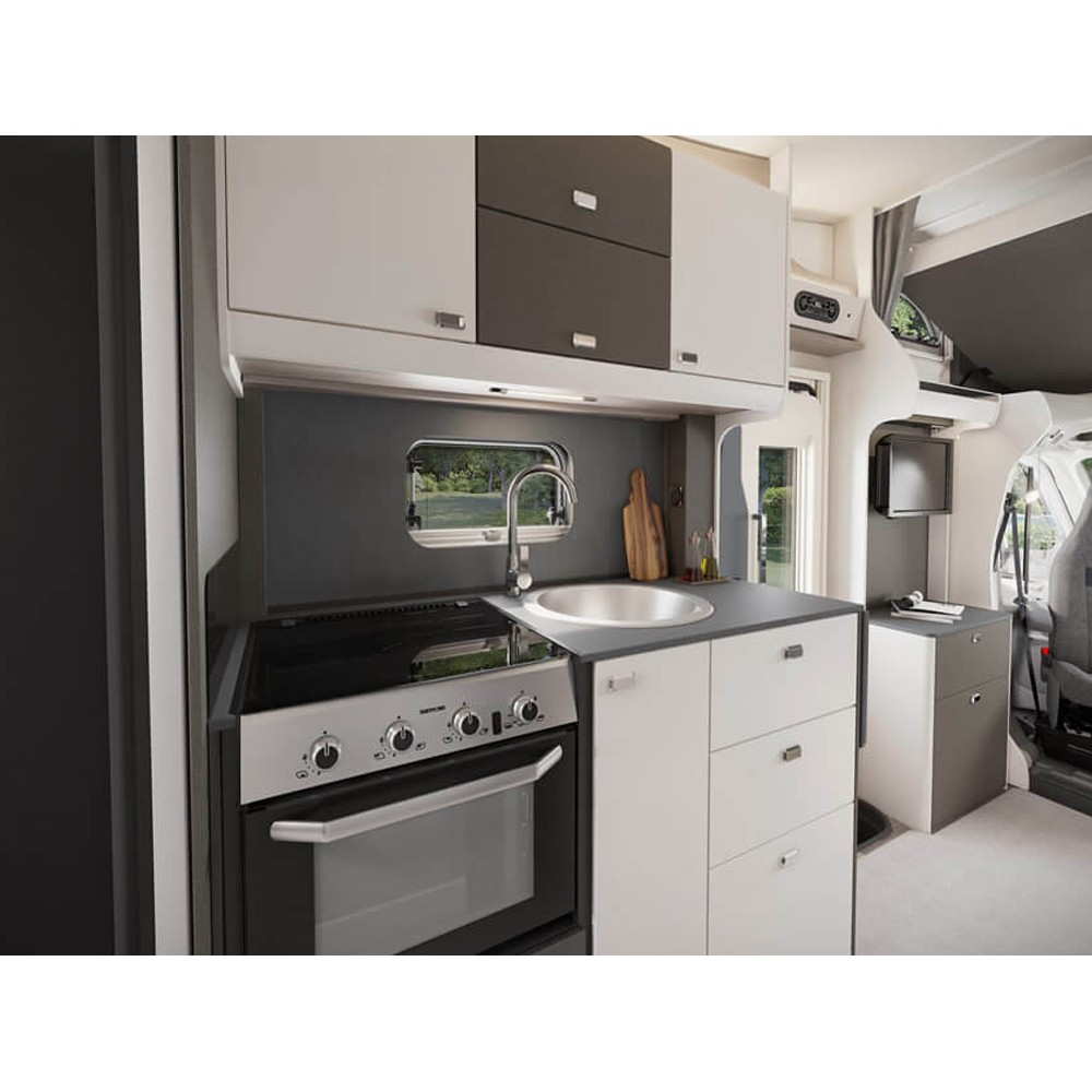 This 2025 Swift Voyager 485 is a 5 seat-belt five berth motorhome which is ideal for families who love to explore. Built on the very popular Ford chassis for travelling with peace of mind. The award winning Voyager is refined and has a very sleek interior, with it's Jet soft furnishing scheme and high performance durable seating.